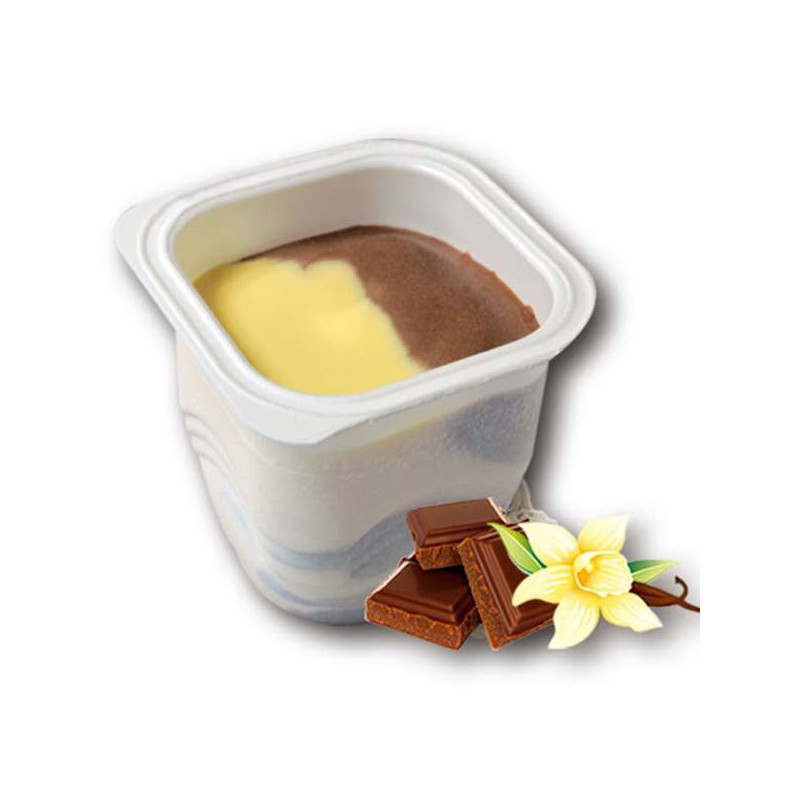 Mousse chocolateada cubierta con crema de chocholate intenso sobre un delicioso bizcocho bañado. P.V.P. 45,10 euros, el envase familiar que contiene 18 raciones individuales.