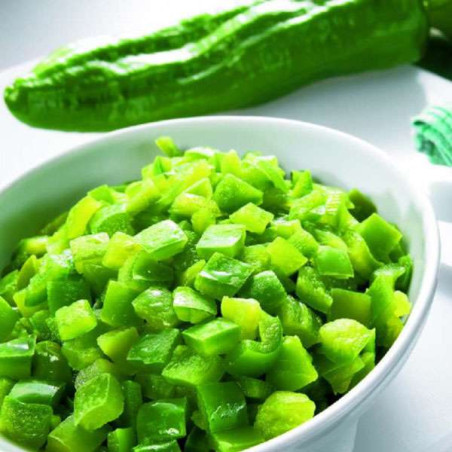 La bolsa, de un kilogramo, contiene judía verde plana, cruda, troceada y congelada.
