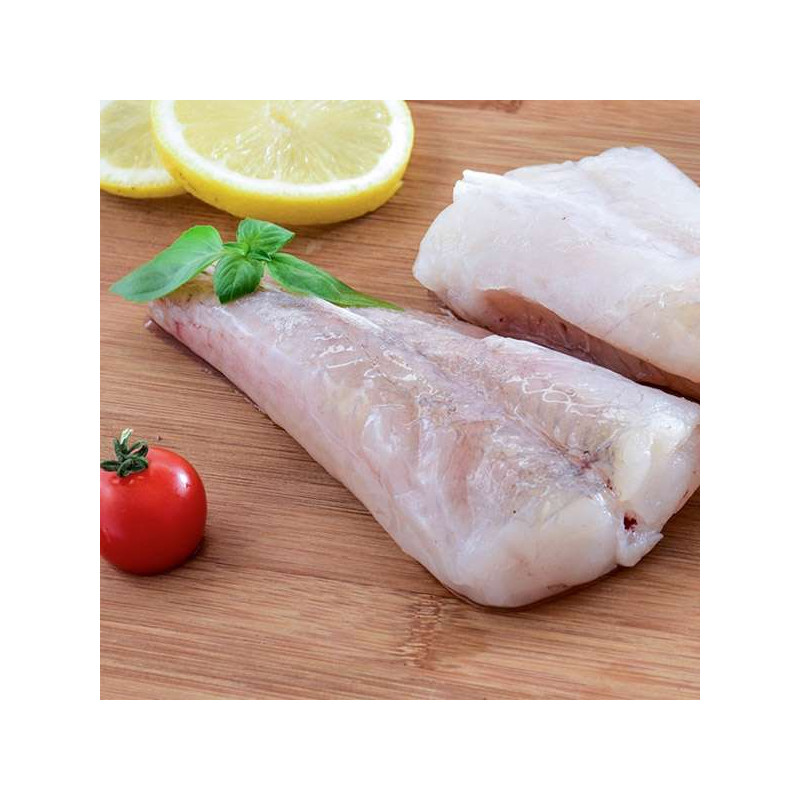 Bolsa de, aproximadamente, un kilo de lomos y colas de maruca. El envase contiene alrededor de seis trozos de pescado.