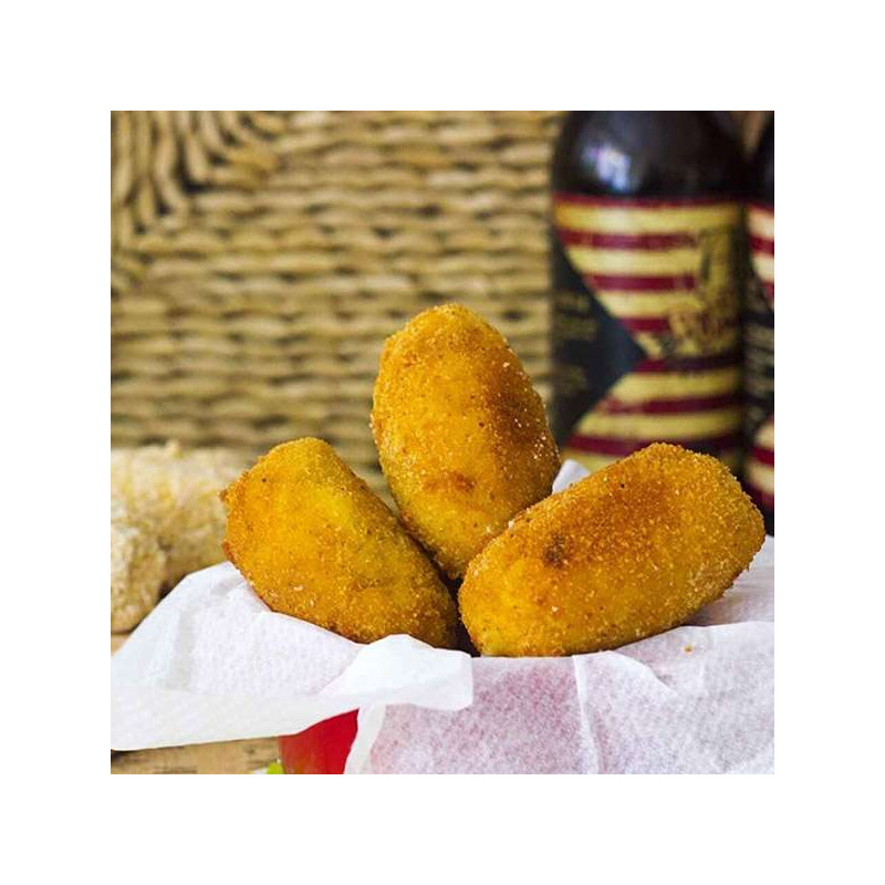 El envase contiene 300 gramos de croquetas variadas, marca El Álamo.
